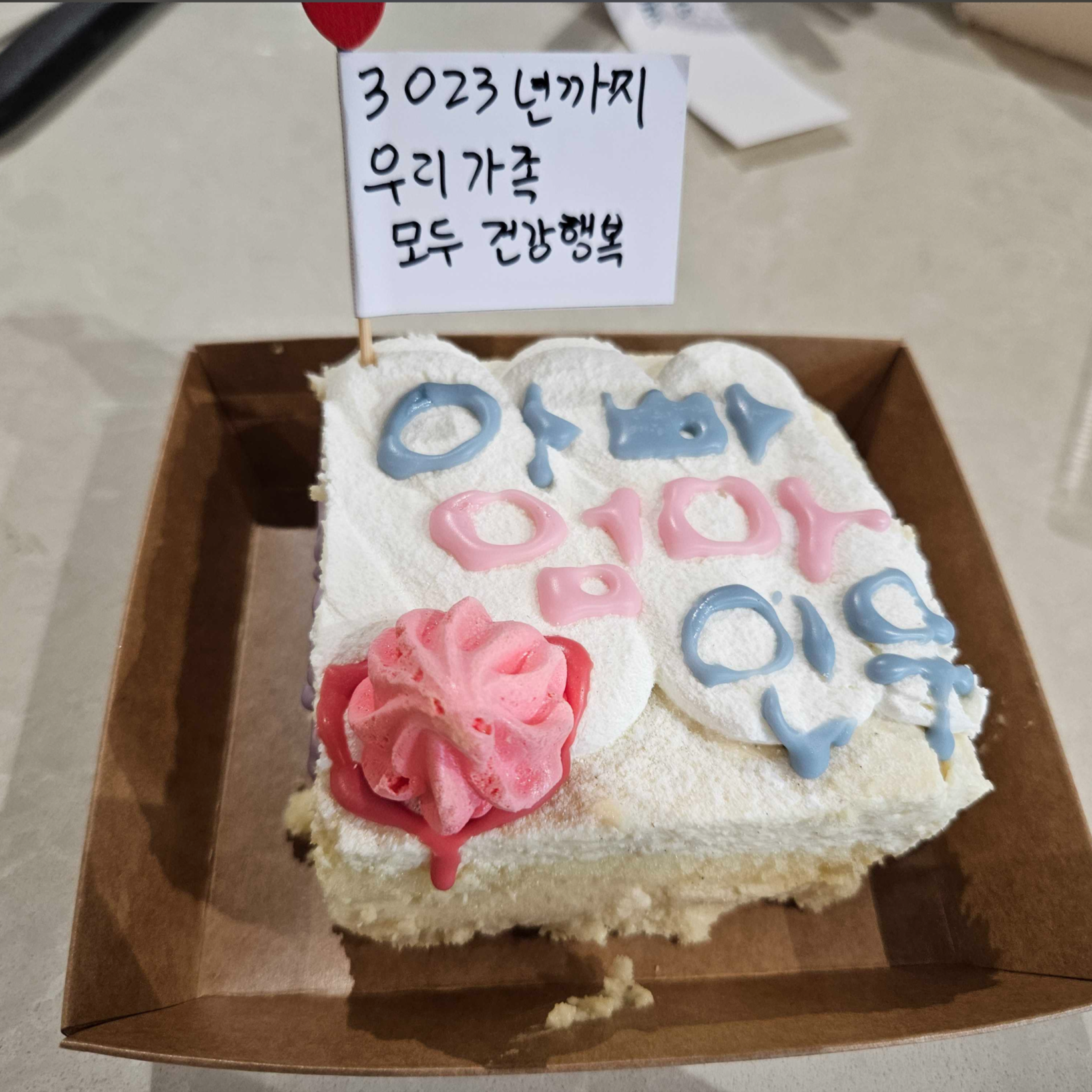 자녀가 있는 분들은 아이의 이름을 쓰셨는데, 세상 마음이 따뜻해지는 케이크입니다. 아빠가 직접 꾸민 케이크를 먹을 수 있는 날이 얼른 왔으면 좋겠습니다.
