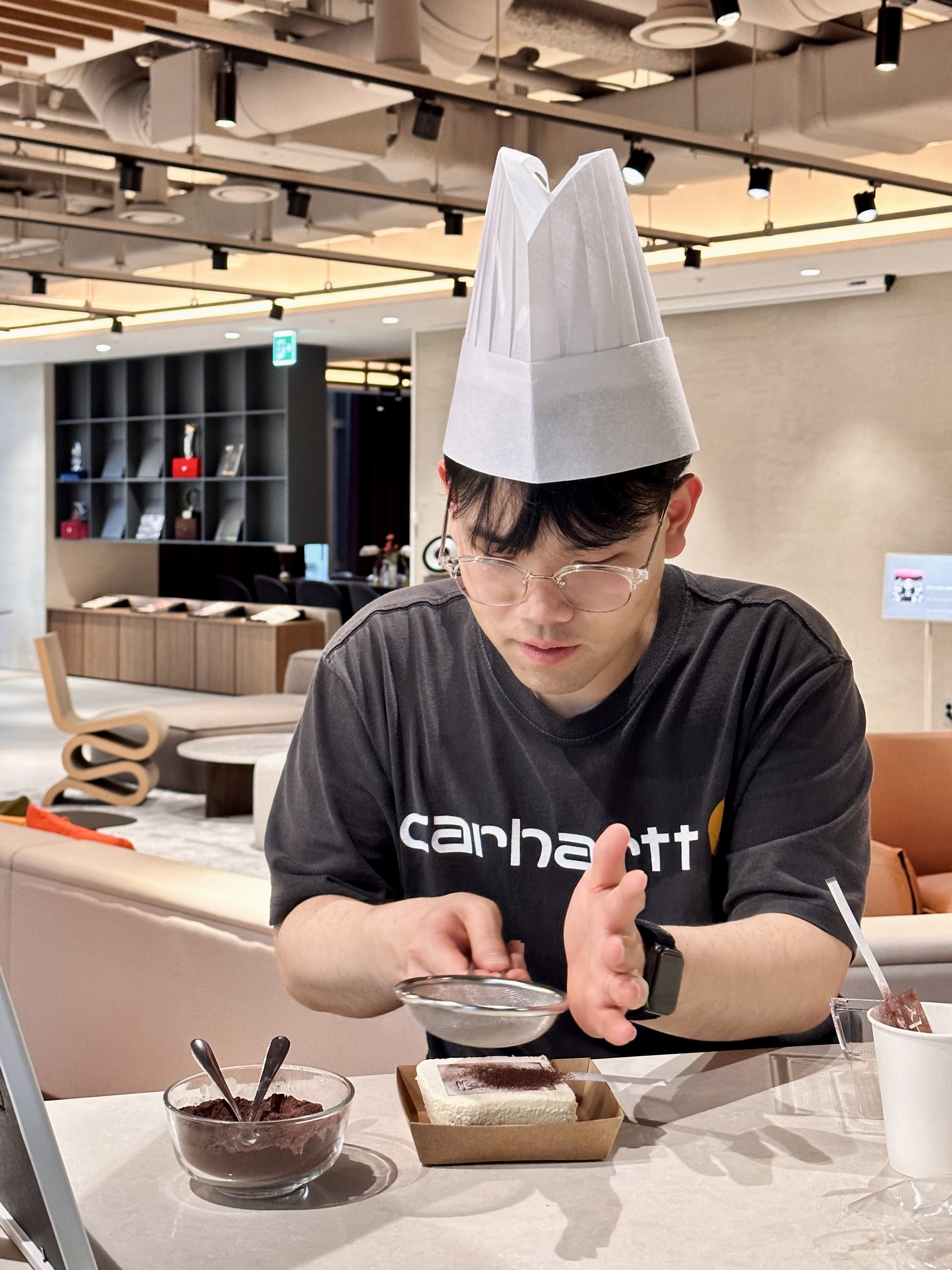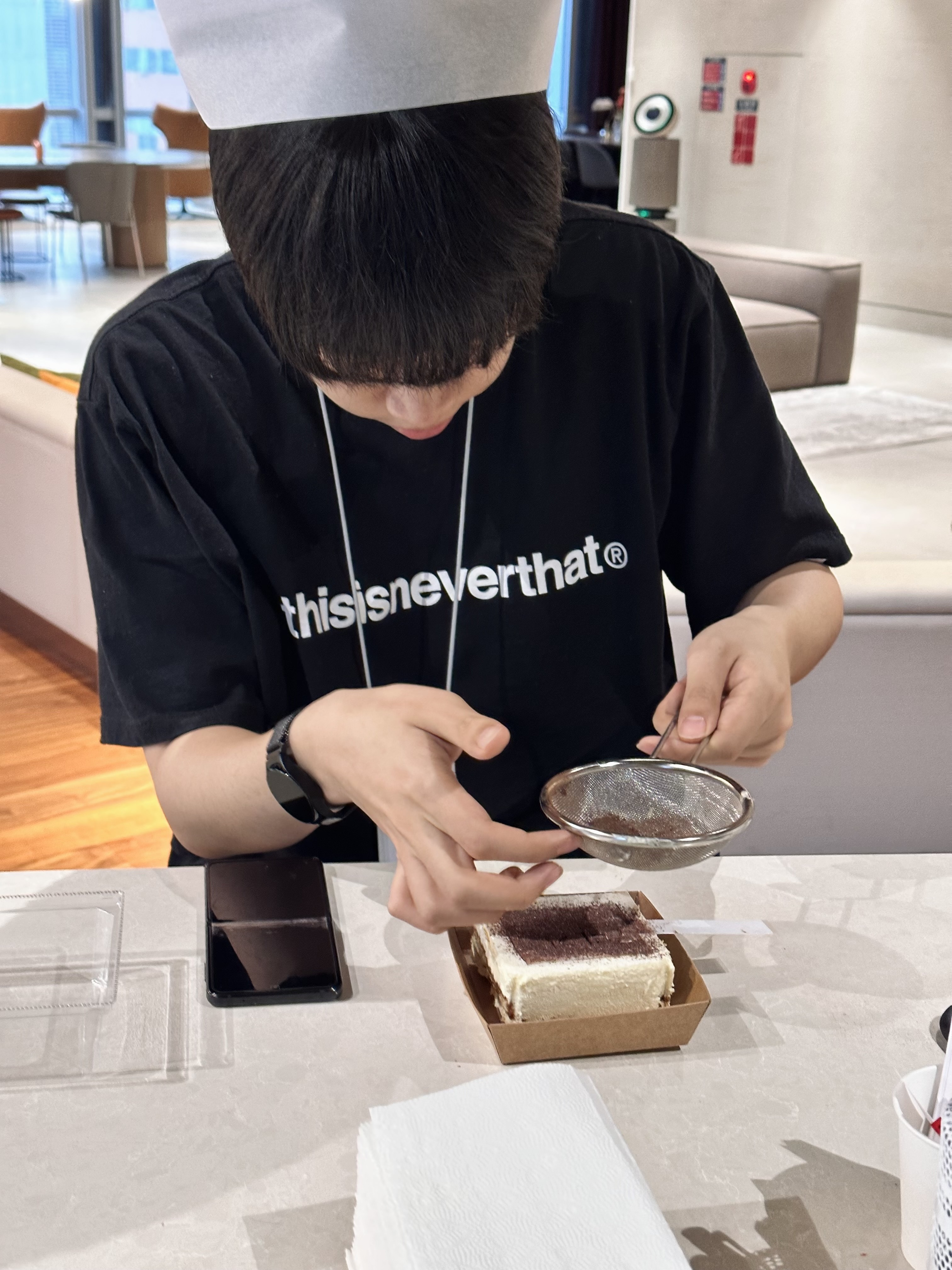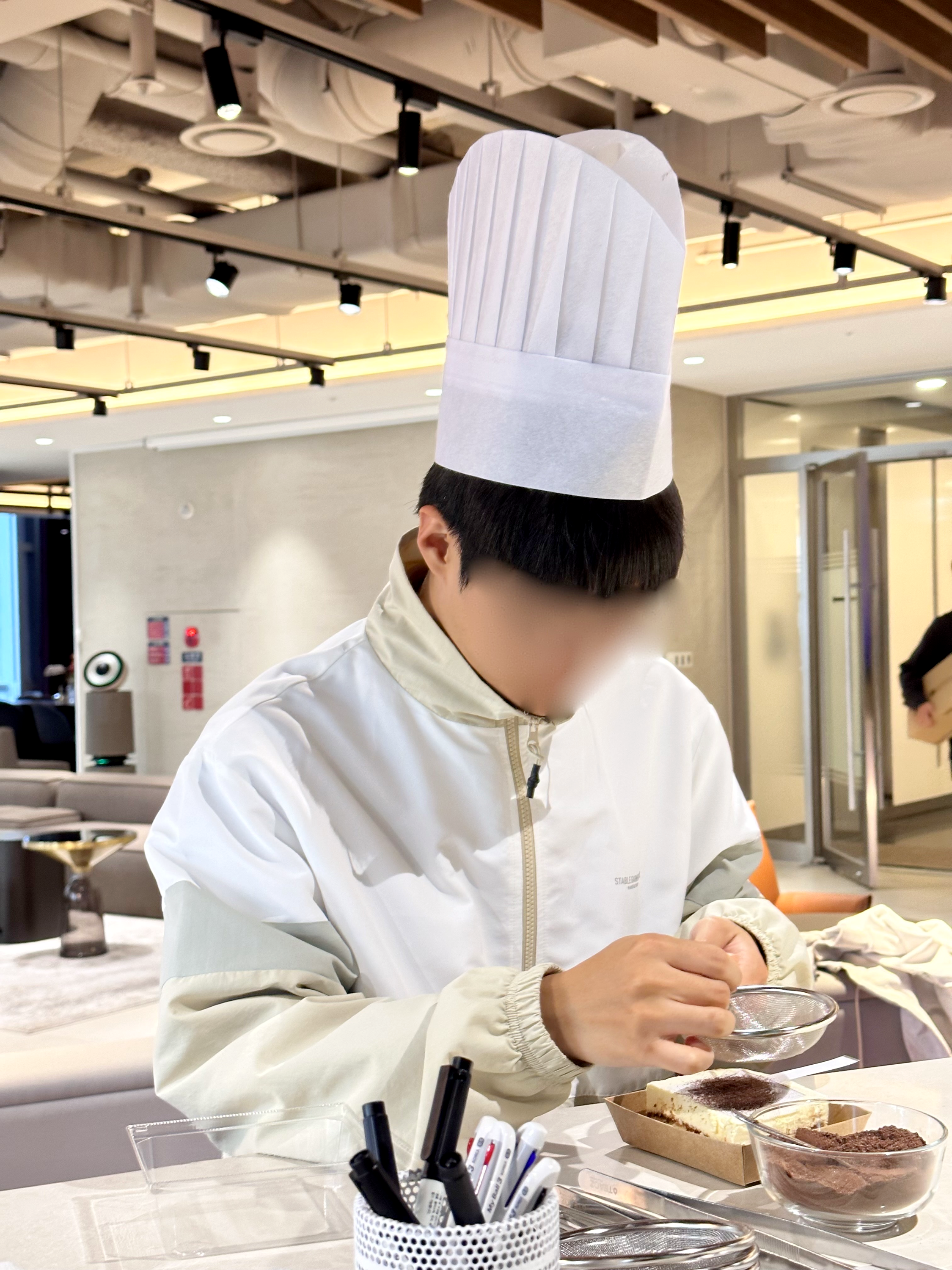 짧은 시간 체험하는 파티셰지만 사진은 제대로 찍어야죠! 준비한 조리사 모자도 잘 써주셔서 더 재미있게 진행할 수 있었습니다. 모두 집중해서 케이크를 꾸미는 모습도 전문 파티셰 못지않았습니다.