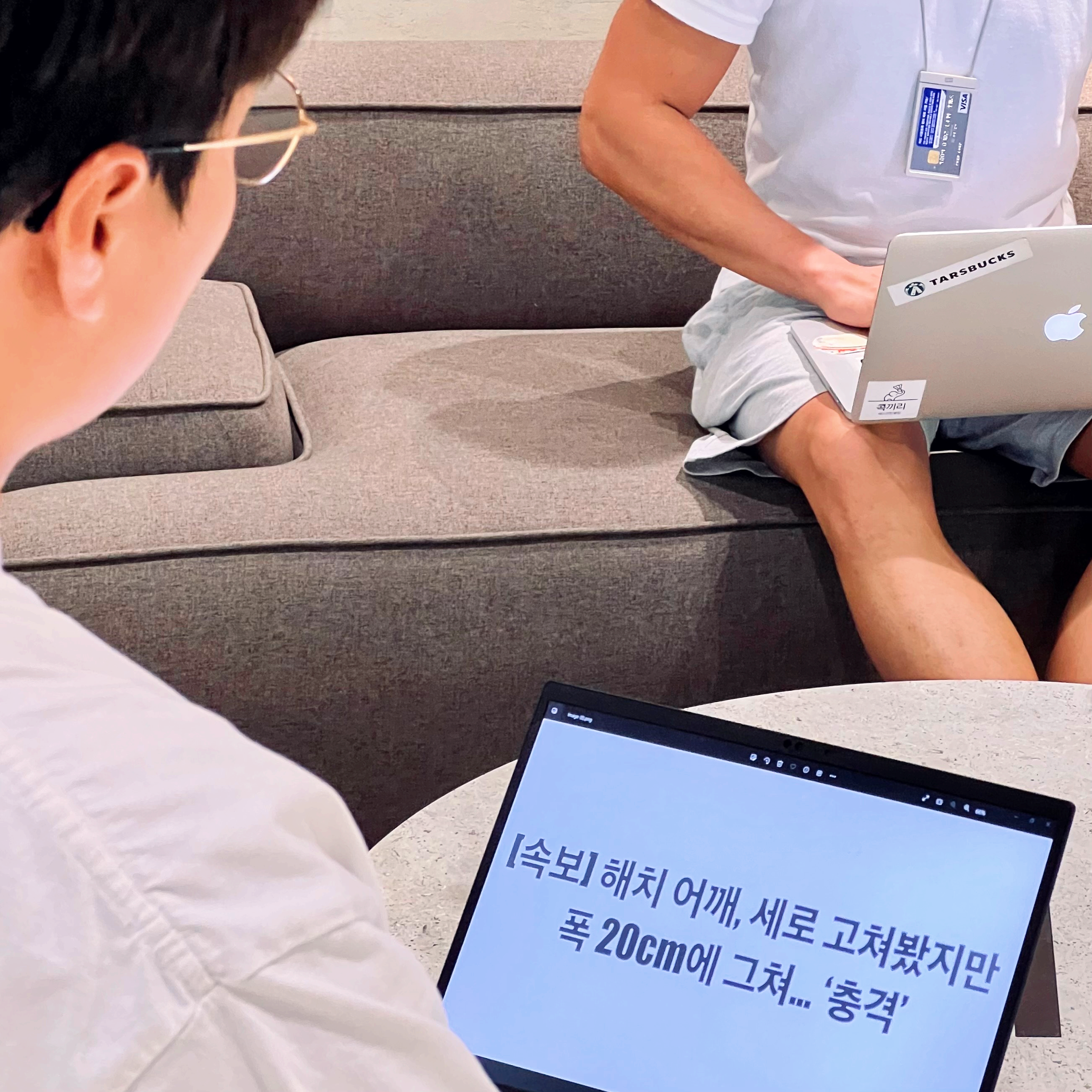 바디 테라피가 진행되는 동안, 헤이딜러 구성원이 편하게 받으시길 바라면서 사진을 많이 찍지는 못했어요. 다만 기획팀 @hatch의 모습을 담아볼 수 있었는데요, 실제 '내 어깨 세로고침'을 이용해 본 후기가 궁금하지 않으신가요? 어땠는지 바로 짧은 인터뷰를 통해 알아볼게요 😀
