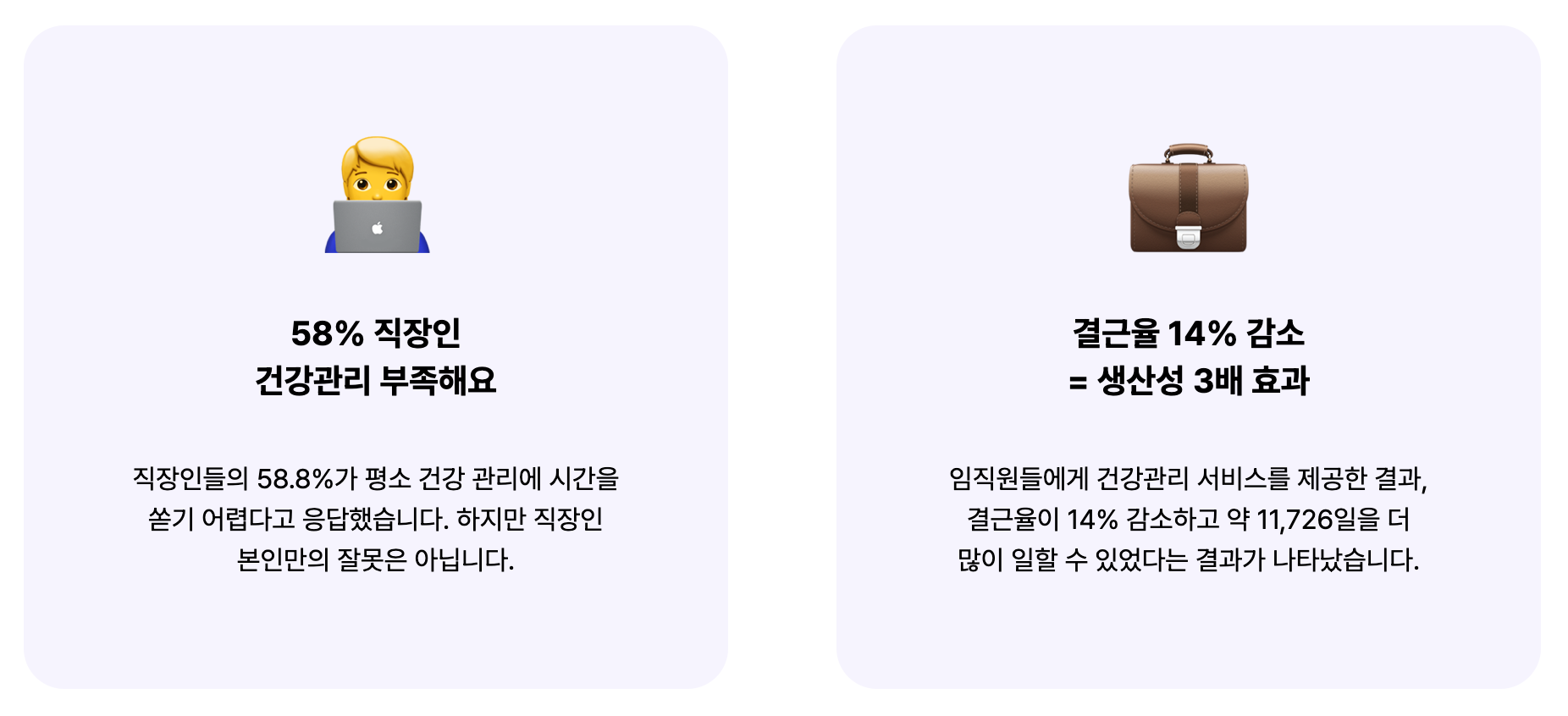 긴 연휴가 끝나 마침내 출근을 하려니... 왜인지 어깨는 무겁고, 허리는 아픈 것 같던 기분, 다들 느껴보신 적 있으시죠? 직장인으로서 부리는 귀여운(?) 투정일 수도 있지만, 그게 꼭 기분 탓만은 아닐 수도 있어요. 58%의 직장인이 운동을 하거나, 교정 테라피를 받는 등 건강 관리에 쏟을 시간이 부족하다는 이야기가 있습니다.