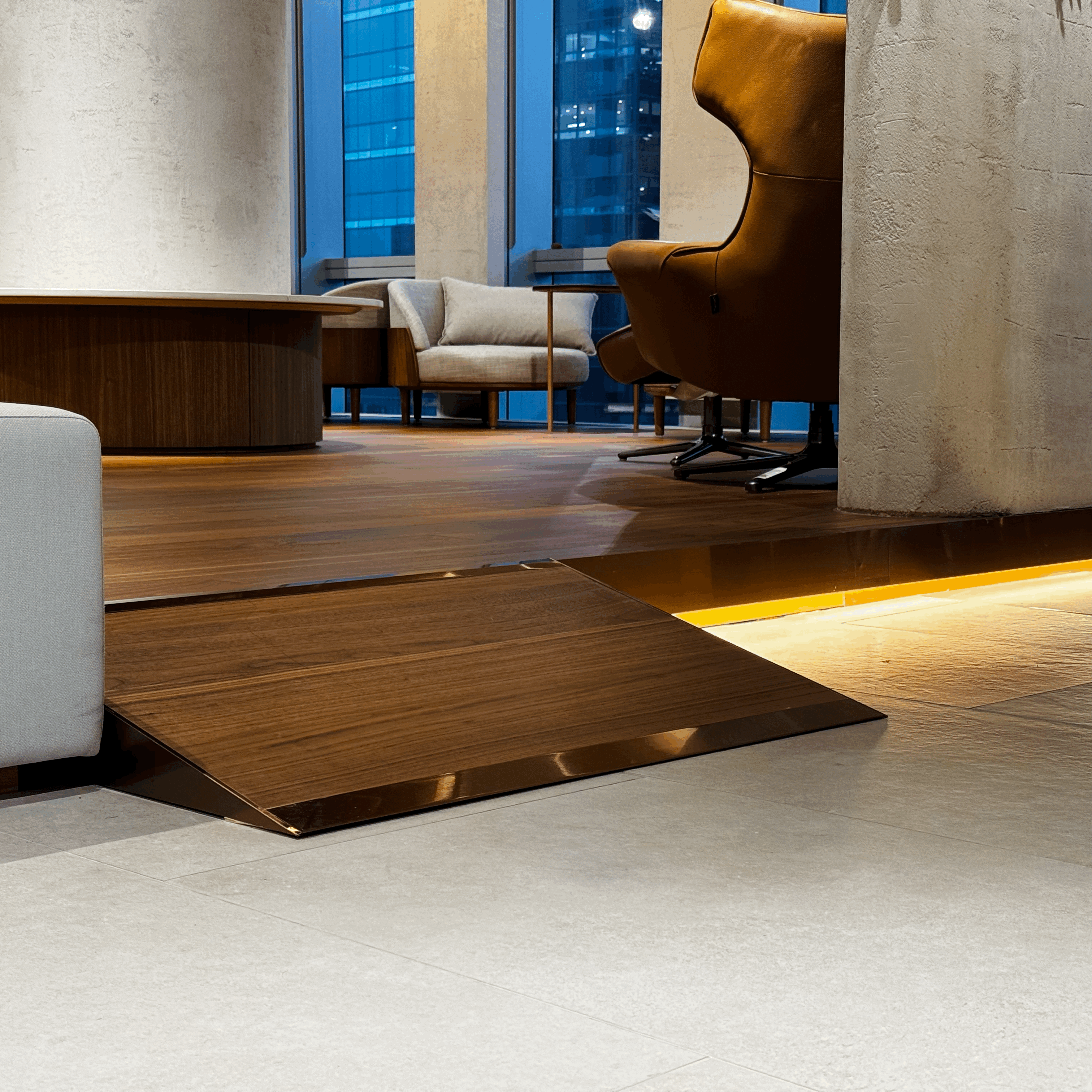 유니버설 디자인의 일환으로 이동식 경사로를 새로 만들었어요. 카트나 휠체어를 이용하더라도, 짐이나 이동 방식에 구애받지 않고 라운지 내 모든 시설을 이용할 수 있습니다. 푸른 조명이 인상적인 플레이룸에는 빈백 체어 4개가 있는데요, 파티션으로 분리되어 누구에게도 방해받지 않고 깊이 휴식을 취하고 싶은 구성원들이 자주 찾는 장소예요 😴
