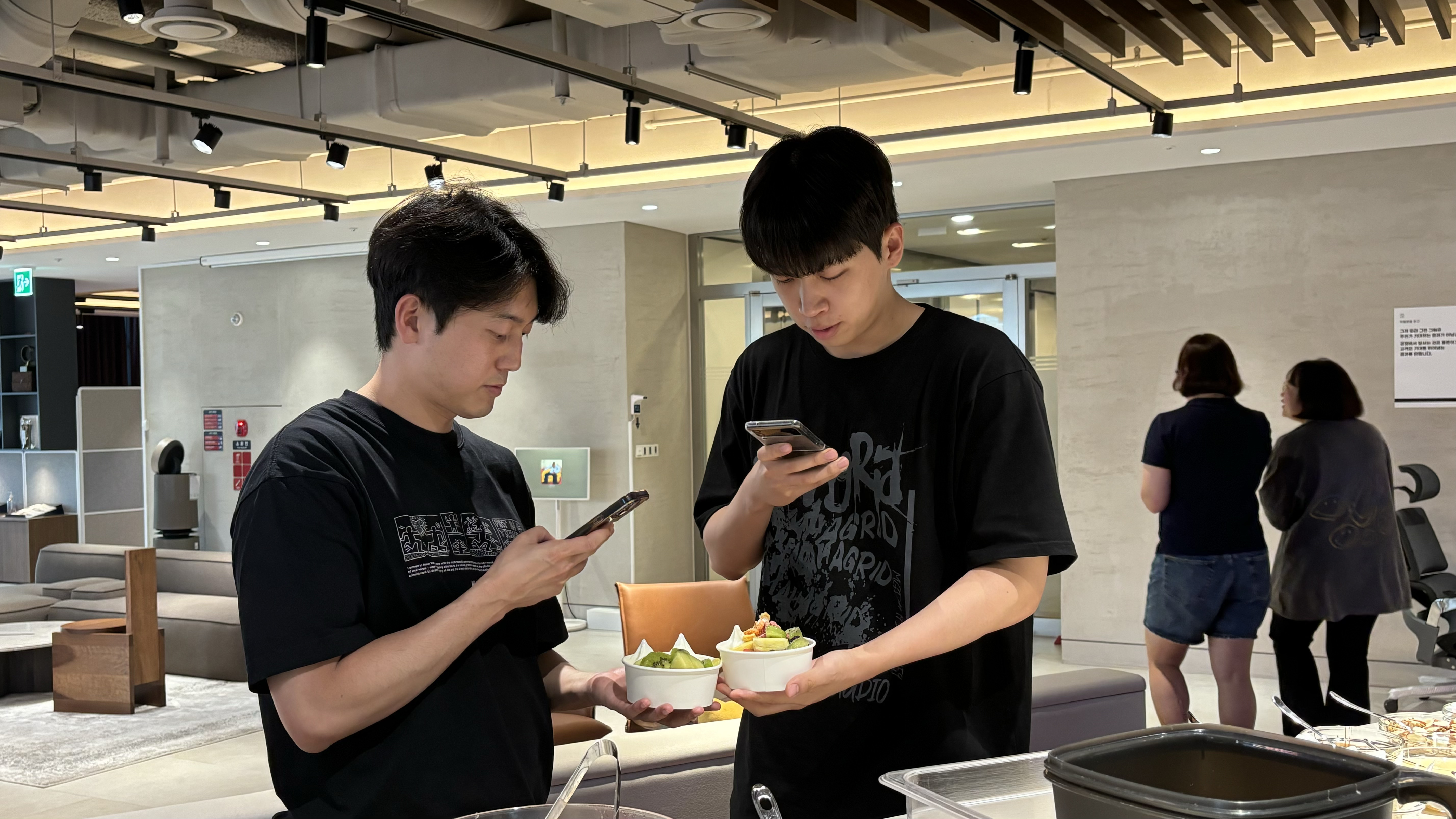 아이스크림을 찍는 simon과 min, 그리고 찍힌 아이스크림