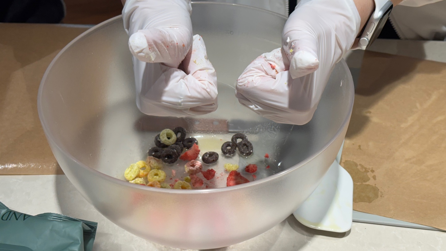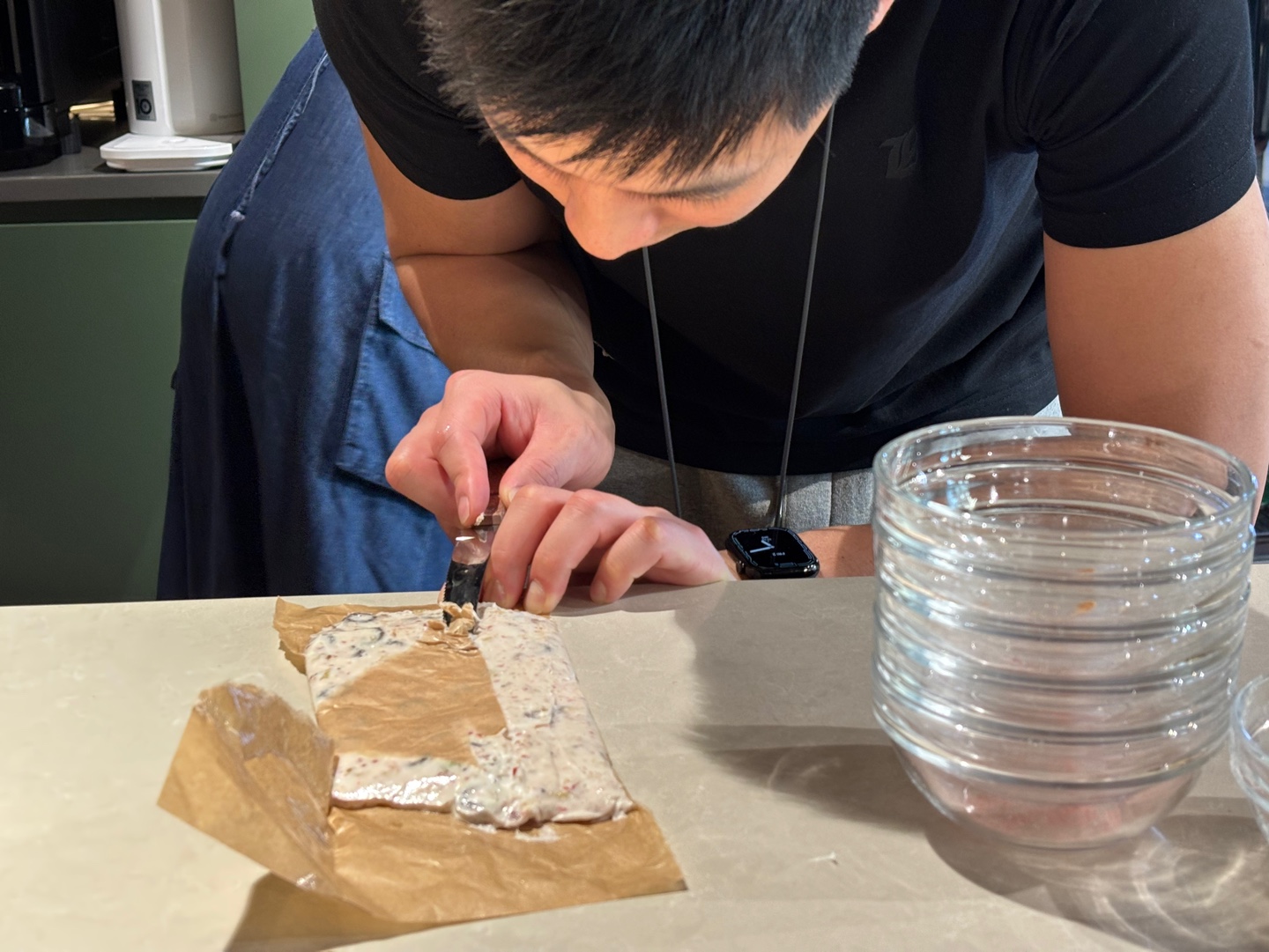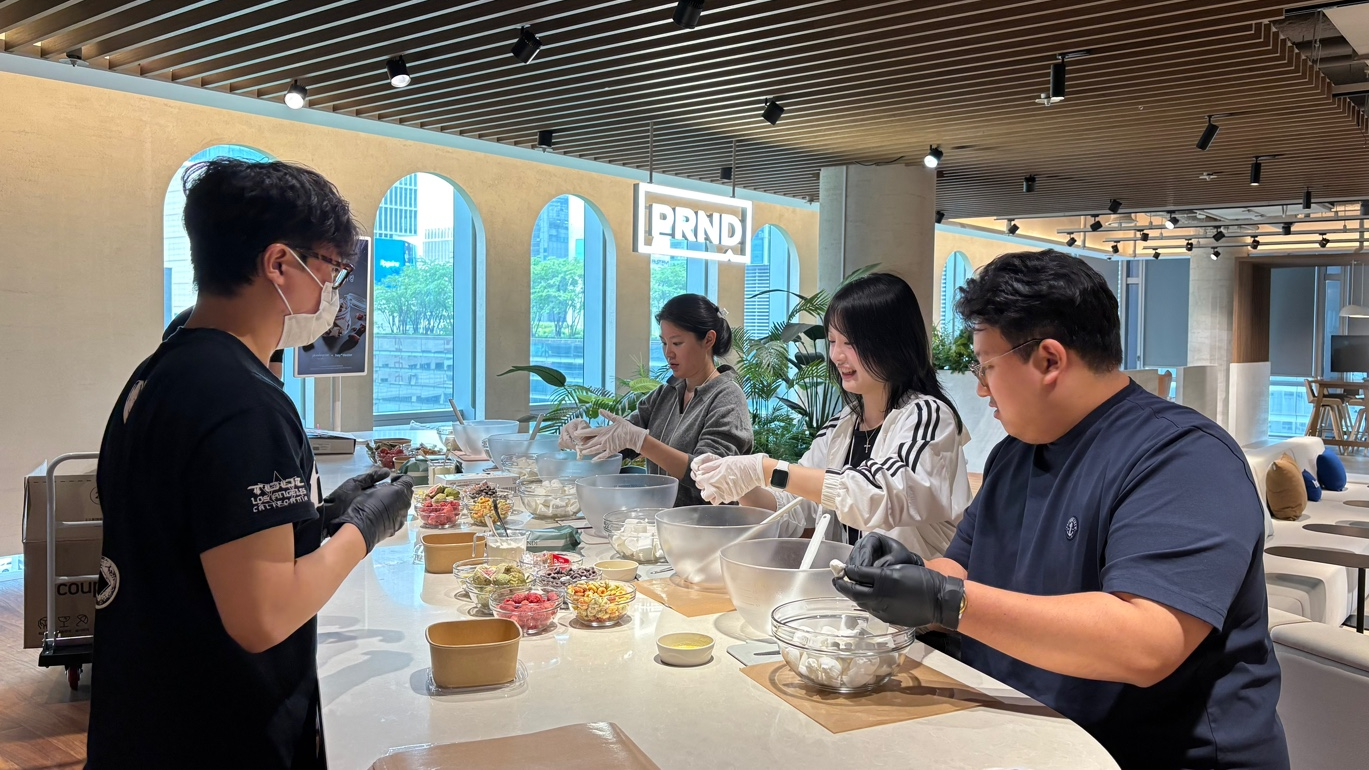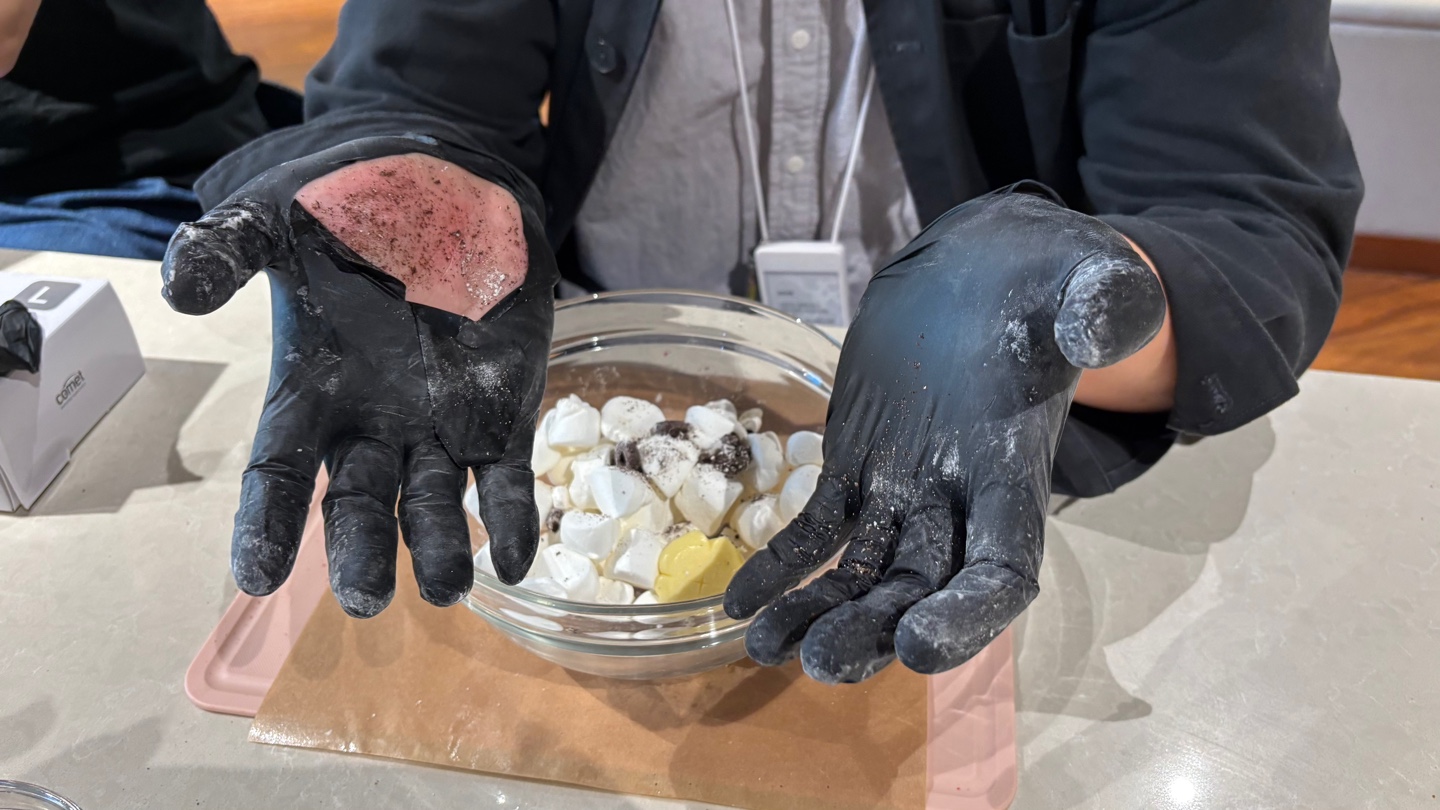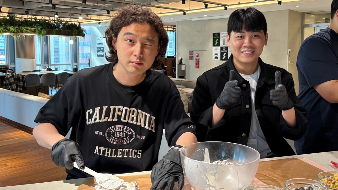 서로 잡아주고 도우며 쫀득쿠키를 만드는 팀원들
