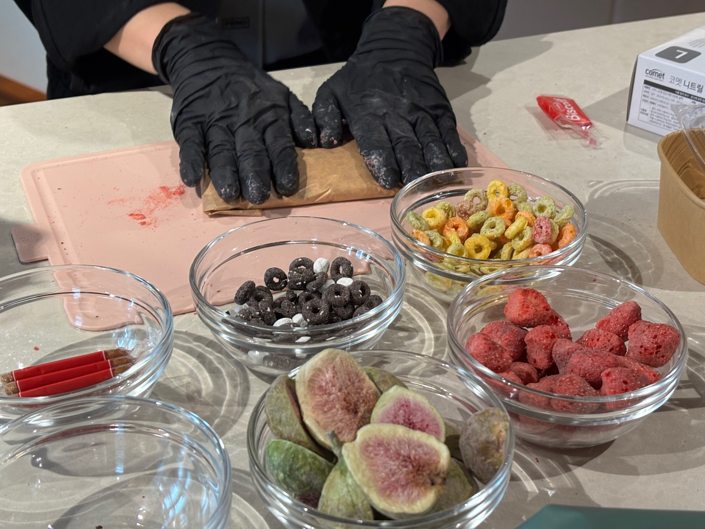 쫀득쿠키가 될 마시멜로와 토핑까지 준비되어
