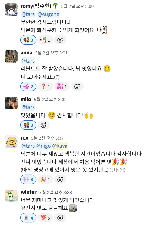 즐겁고 맛있는 시간이 된 것 같아 다행입니다. 😁