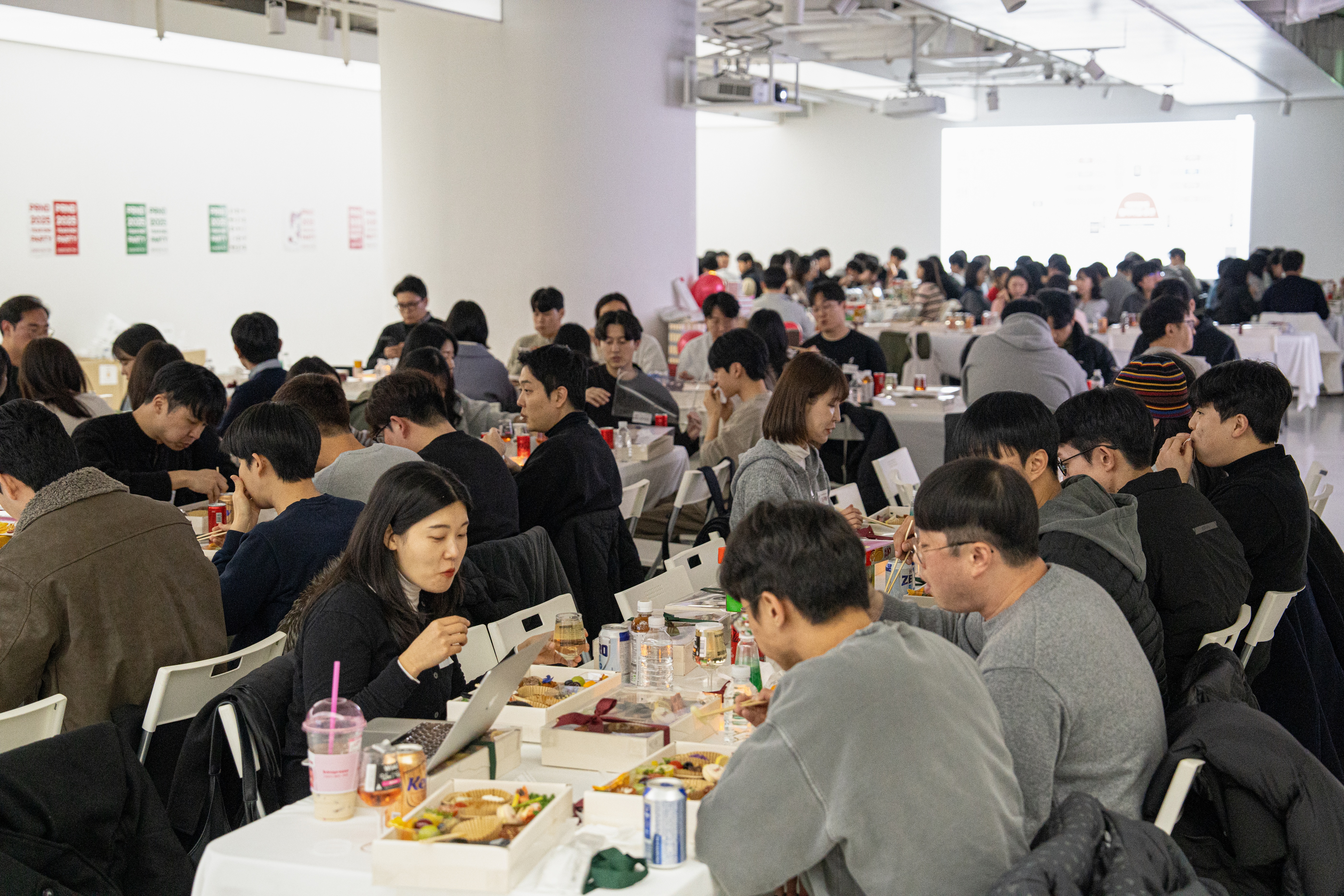 약 300명의 구성원을 모시기 위해 처음으로 새로운 장소에서 송년회를 진행했습니다! 🥳